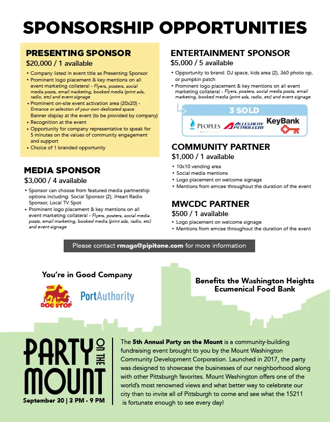 • Prominent logo placement & key mentions on all event marketing collateral - Flyers, posters, social media posts, email marketing, booked media (print ads, radio, etc) and event signage